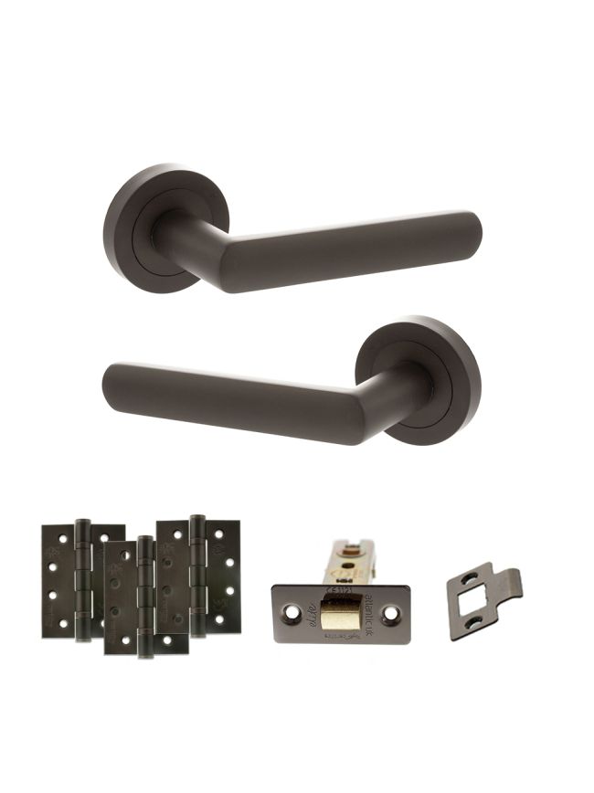 STATUS Carolina Door Handle Pack (Latch Set - 2.5" CE Latch, 4" Fire Rated Hinges x3) - Urban Dark Bronze