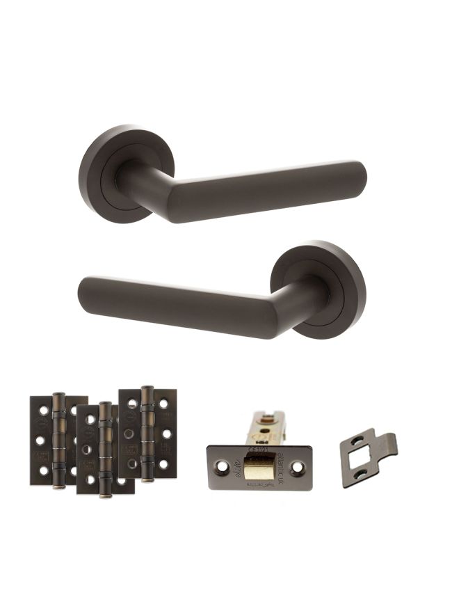 STATUS Carolina Door Handle Pack (Latch Set - 3" CE Latch, 3" Fire Rated Hinges x3) - Urban Dark Bronze