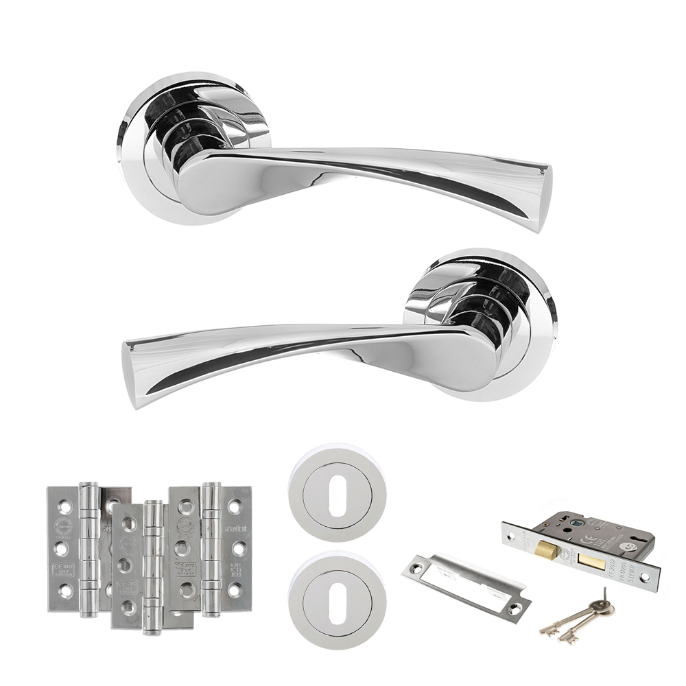 STATUS Colorado Door Handle Pack (3 Lever Lock Set - 3" CE Sashlock, 3" Fire Rated Hinges x3) - Polished Chrome