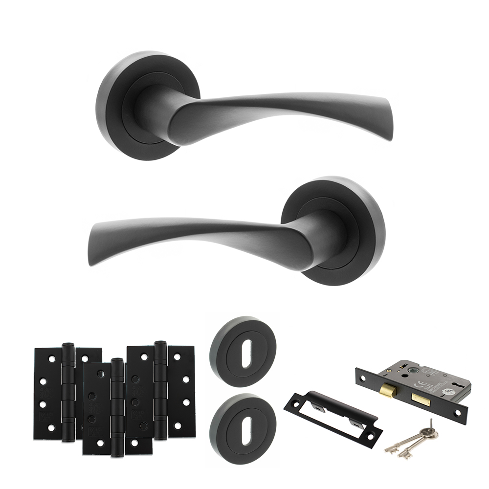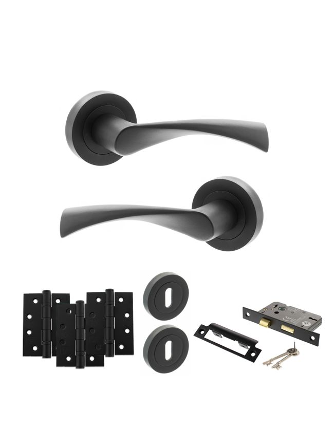 STATUS Colorado Door Handle Pack (3 Lever Lock Set - 3" CE Sashlock, 4" Fire Rated Hinges x3) - Matt Black
