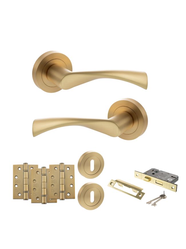 • A low security option for use on internal doors you’d like to lock with a key such as bedrooms or studys. It comes with a pair of handles, 3 lever sashlock, 2 keys, 2 key escutcheons and hinges.