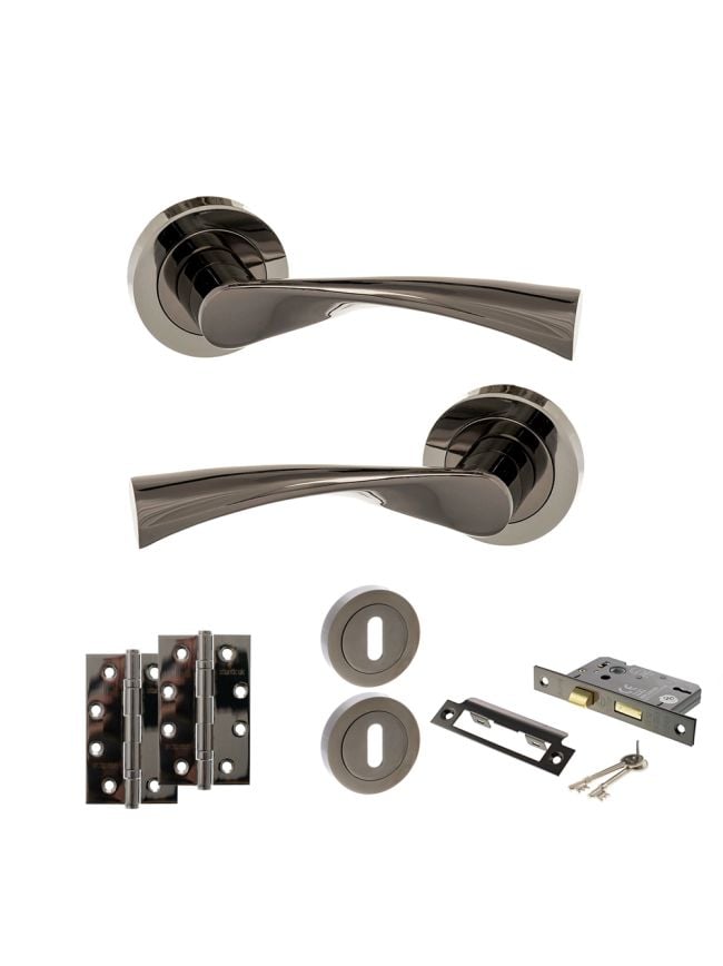 • A low security option for use on internal doors you’d like to lock with a key such as bedrooms or studys. It comes with a pair of handles, 3 lever sashlock, 2 keys, 2 key escutcheons and hinges.