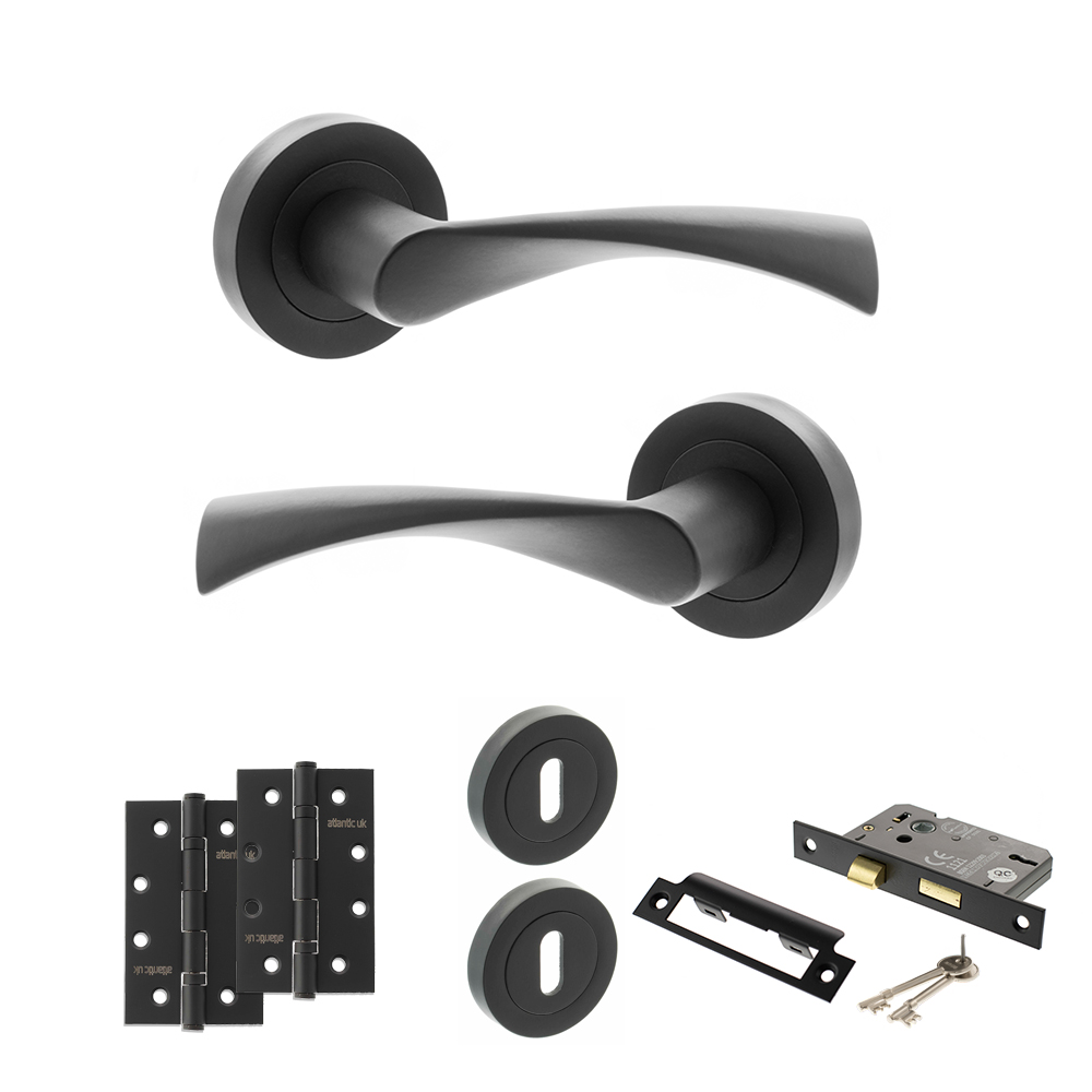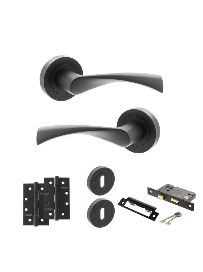 STATUS Colorado Door Handle Pack (3 Lever Lock Set - 3" CE Sashlock, 4" Slim Knuckle Hinges x2) - Matt Black