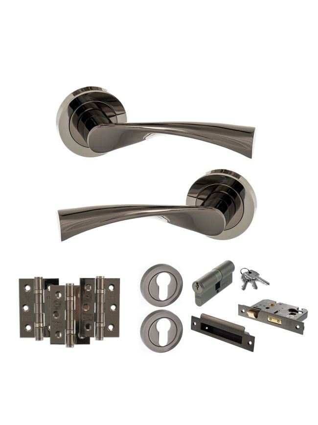 STATUS Colorado Door Handle Pack (Euro Lock Set - 2.5" CE Sashlock, 3" Fire Rated Hinges x3) - Black Nickel