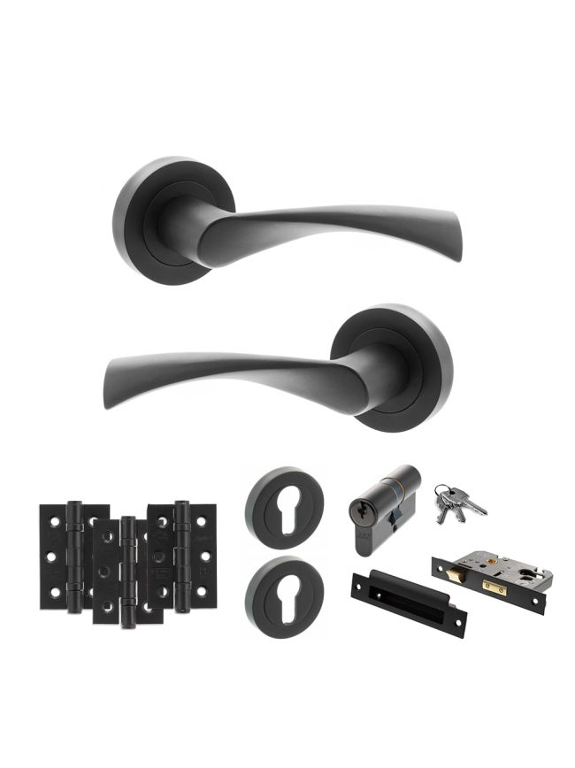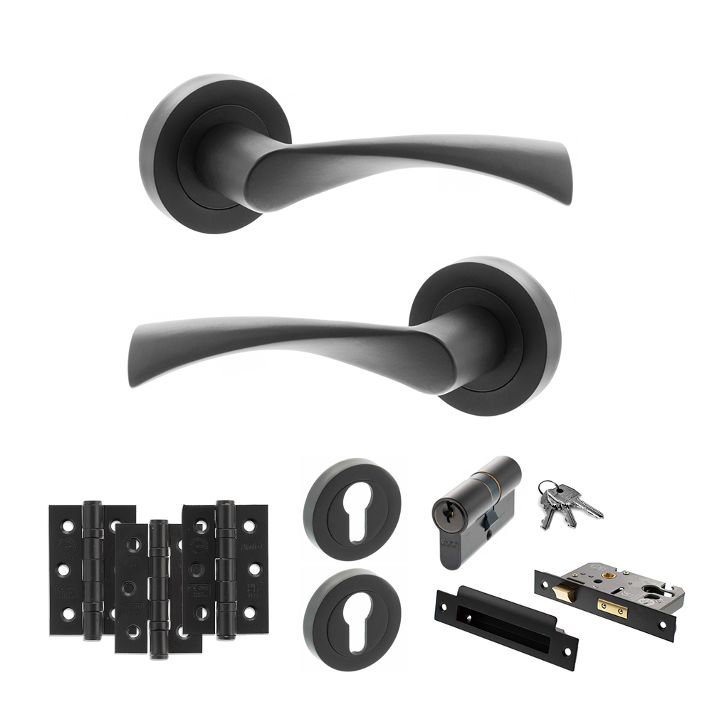 STATUS Colorado Door Handle Pack (Euro Lock Set - 2.5" CE Sashlock, 3" Fire Rated Hinges x3) - Matt Black