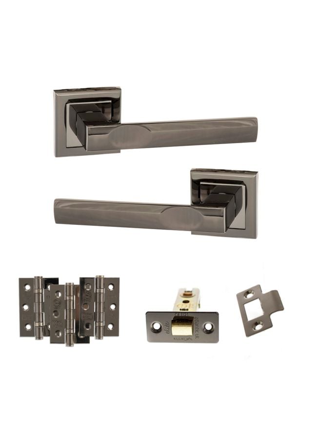 STATUS Kansas Door Handle Pack (Latch Set - 2.5" CE Latch, 3" Fire Rated Hinges x3) - Black Nickel