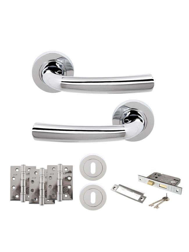 • A low security option for use on internal doors you’d like to lock with a key such as bedrooms or studys. It comes with a pair of handles, 3 lever sashlock, 2 keys, 2 key escutcheons and hinges.