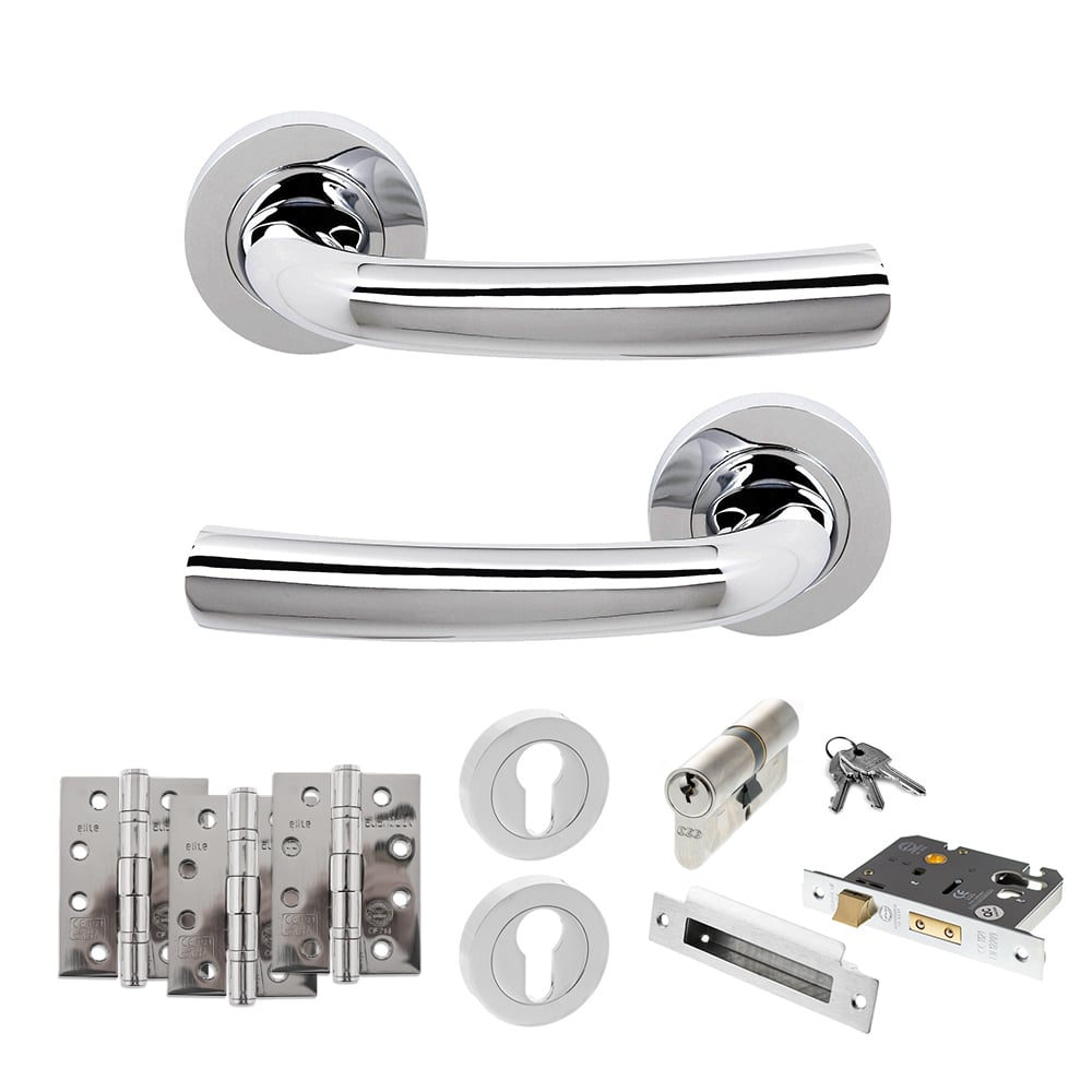STATUS Nevada Door Handle Pack (Euro Lock Set - 2.5" CE Sashlock, 4" Fire Rated Hinges x3) - Polished Chrome