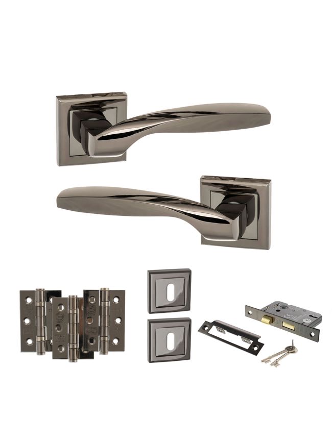 STATUS Oklahoma Door Handle Pack (3 Lever Lock Set - 2.5" CE Sashlock, 3" Fire Rated Hinges x3) - Black Nickel