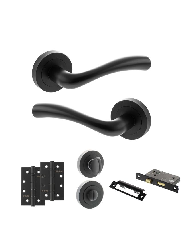 STATUS Texas Door Handle Pack (Bathroom Set - 2.5" CE Bathroom Lock, 4" Slim Knuckle Hinges x2) - Matt Black