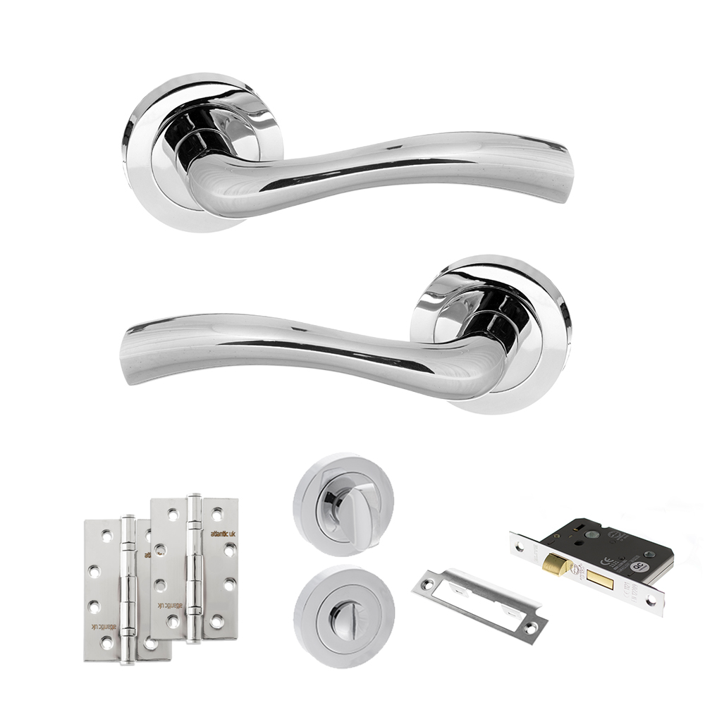 STATUS Texas Door Handle Pack (Bathroom Set - 2.5" CE Bathroom Lock, 4" Slim Knuckle Hinges x2) - Polished Chrome