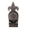 Black Antique rim cylinder latch pull with a fleur-de-lys pattern at the top and on the key access cover shield. Fitting around a Yale type cylinder used on a nightlatch, it is used to pull the door closed from the outside. The lower part of the pull projects forward providing ample finger purchase. The cover shield is hinged at the top and when lifted reveals the lock (supplied separately). Comes with a 10 year mechanical guarantee. Suitable for domestic use. Ludlow Black Antique is a traditional range of furniture with a powder coated Black finish.