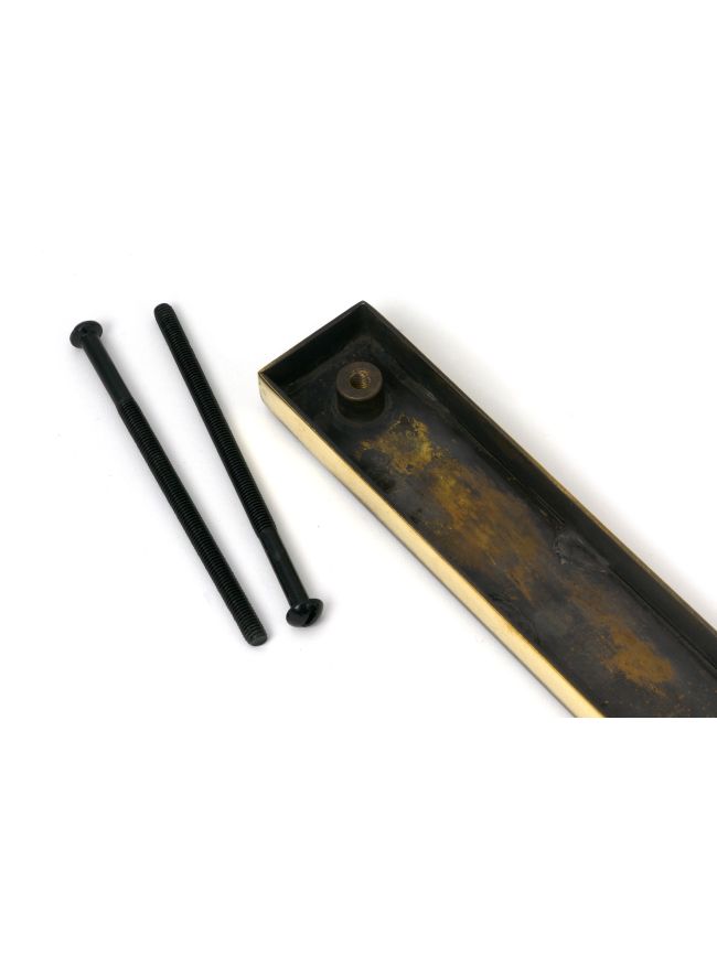 Manufactured from solid, unlacquered Brass, our Aged Brass products undergo an accelerated ageing process before surface areas are repolished, creating a striking contrast between the darker patina left around the edges and recesses, and brighter surface areas. As an unlacquered, 'living' finish Aged Brass will continue to oxidise, meaning it will darken over time. If the product becomes too dark or tarnished, it can be polished to restore the brighter finish on surface areas.
