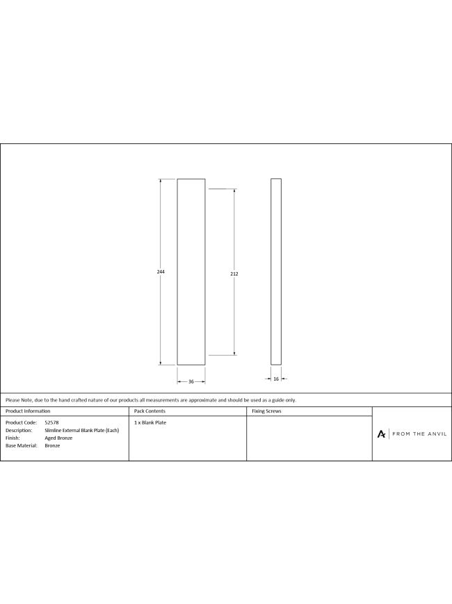 Aged Bronze Slimline External Blank Plate (Each)