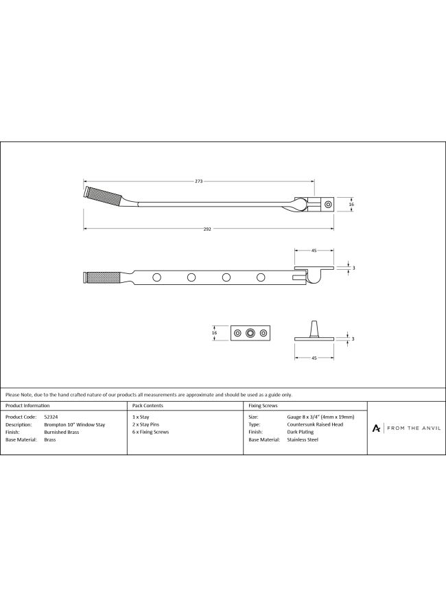 Burnished Brass 10" Brompton Stay