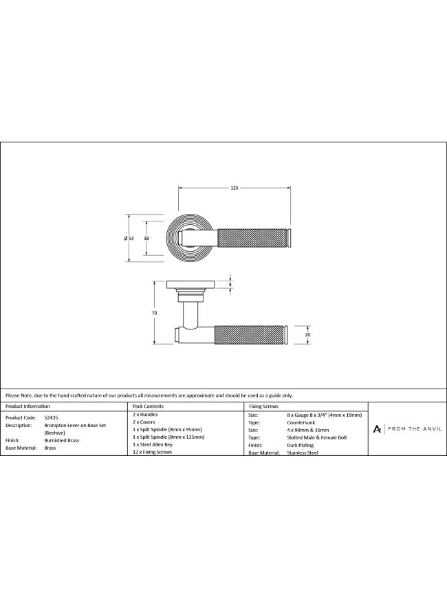 Burnished Brass Brompton Lever on Rose Set (Beehive)