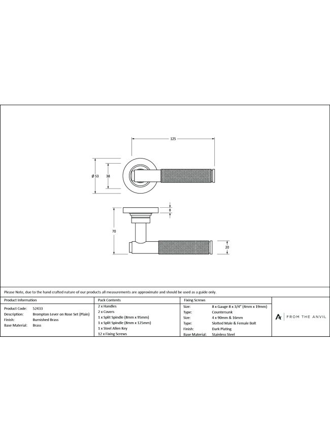 Burnished Brass Brompton Lever on Rose Set (Plain)
