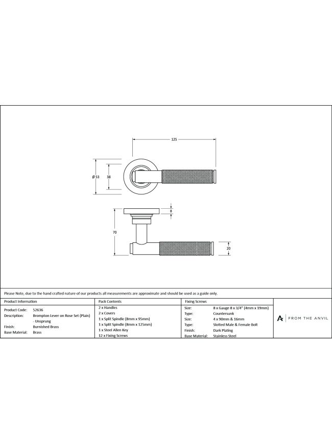 Burnished Brass Brompton Lever on Rose Set (Plain) - Unsprung