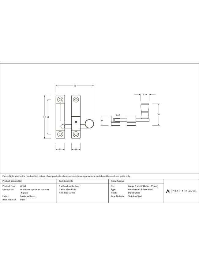 Keep plate: 64mm x 13mm