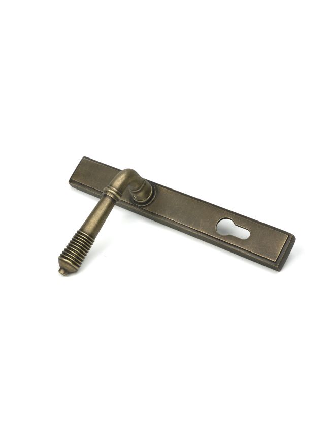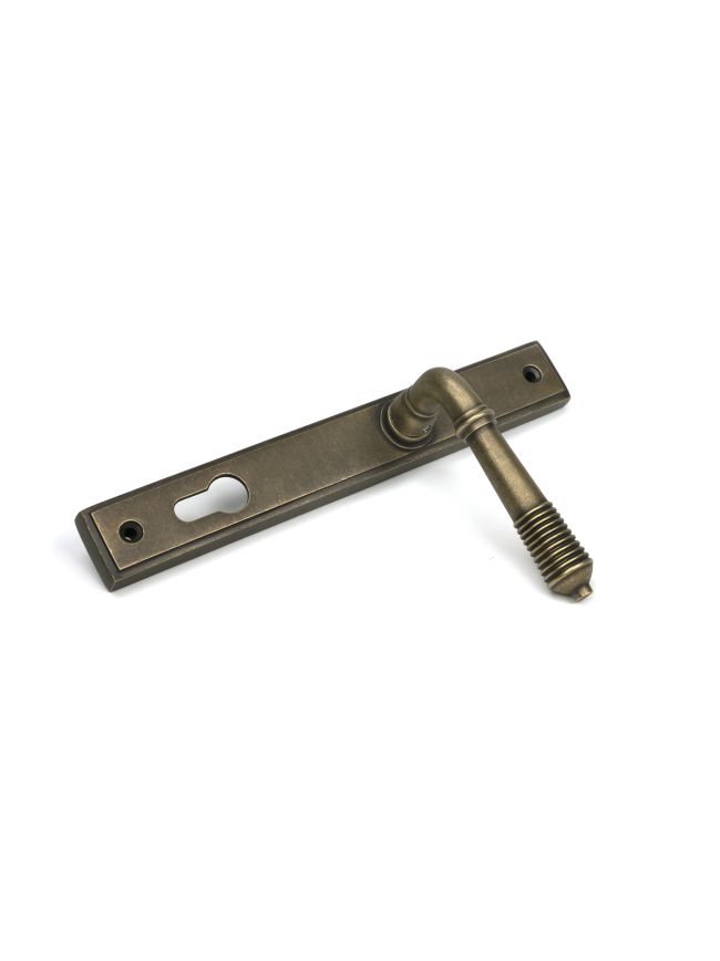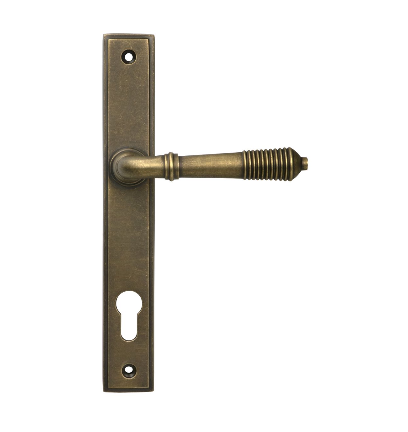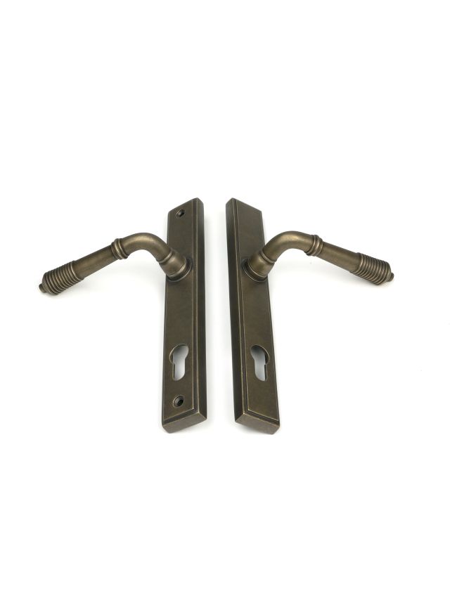 Burnished Brass Reeded Slimline Lever Espag. Lock Set