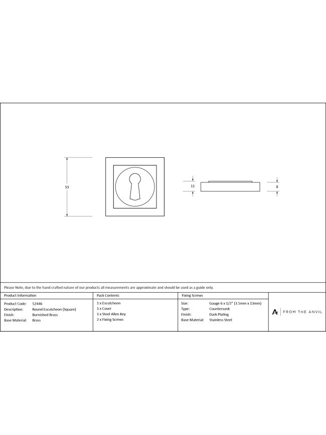 Burnished Brass Round Escutcheon (Square)