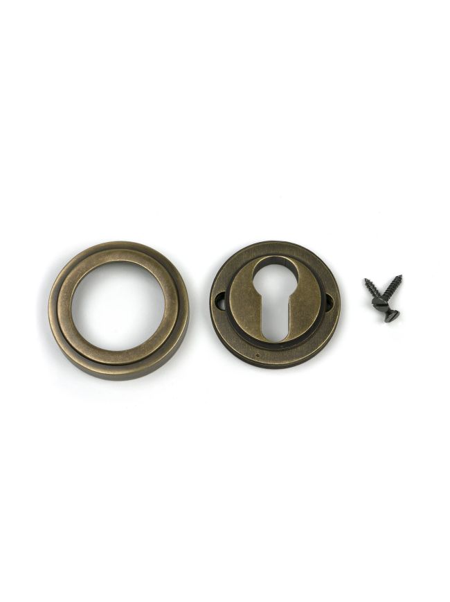 Burnished Brass Round Euro Escutcheon (Art Deco)