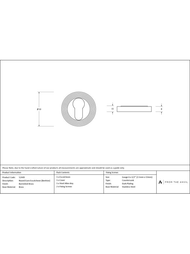 Burnished Brass Round Euro Escutcheon (Beehive)