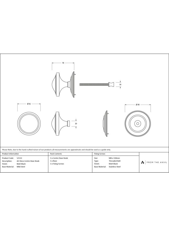 - Our weighty Art Deco range is forged from mild steel, which exhibits the high-quality materials used to create this centre door knob. A perfect design choice for external doors, with many matching products available.