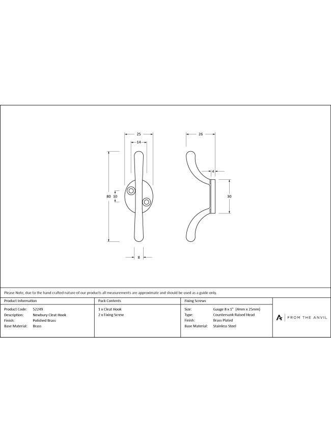 Polished Brass Newbury Cleat Hook