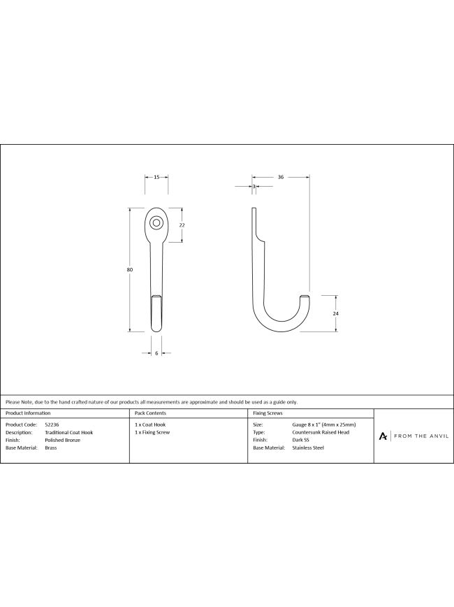 Polished Bronze Traditional Coat Hook