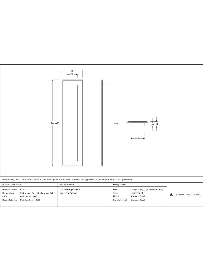 Polished Marine SS (316) 250mm Art Deco Rectangular Pull