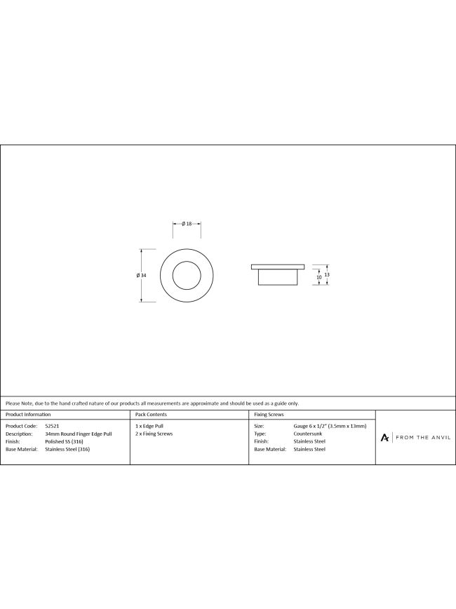 Polished Marine SS (316) 34mm Round Finger Edge Pull