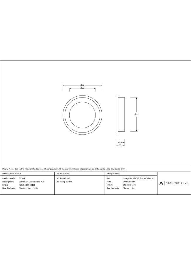 Polished Marine SS (316) 60mm Art Deco Round Pull