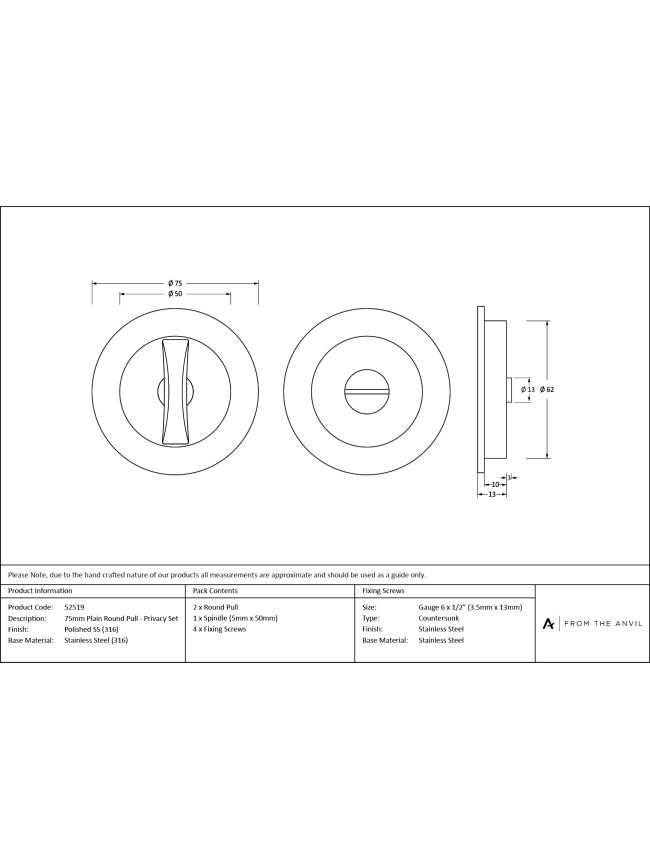 Minimum door thickness: 35mm. - Set includes 2 Round pull handles and coin and release thumbturn.