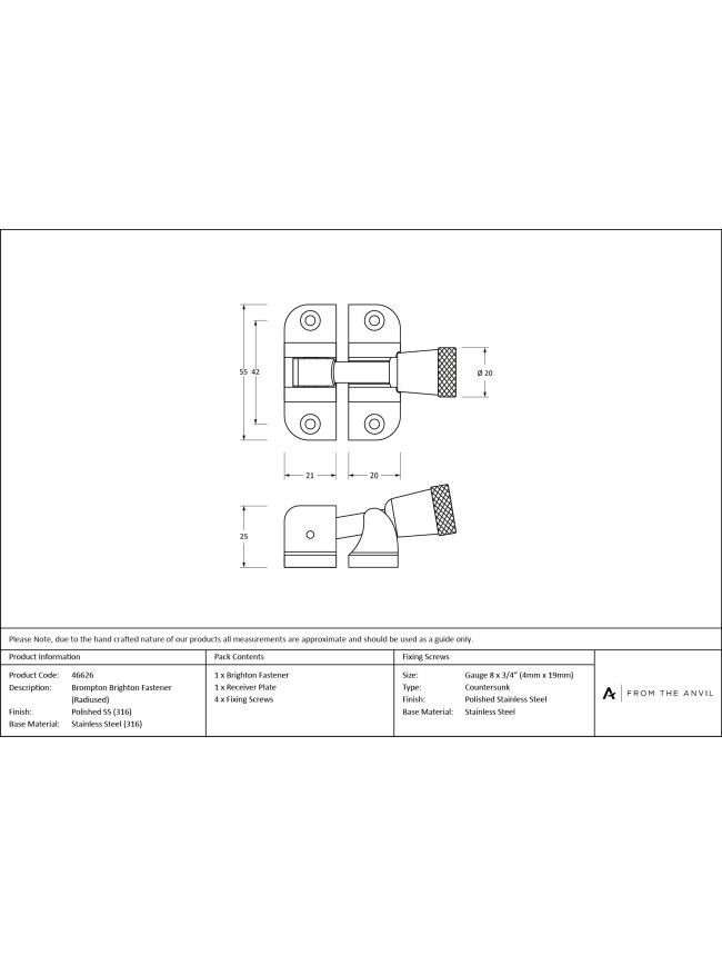 Polished Marine SS (316) Brompton Brighton Fastener (Radiused)