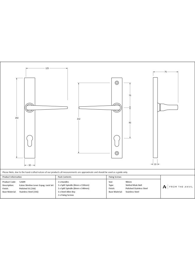 Polished Marine SS (316) Eaton Slimline Lever Espag. Lock Set