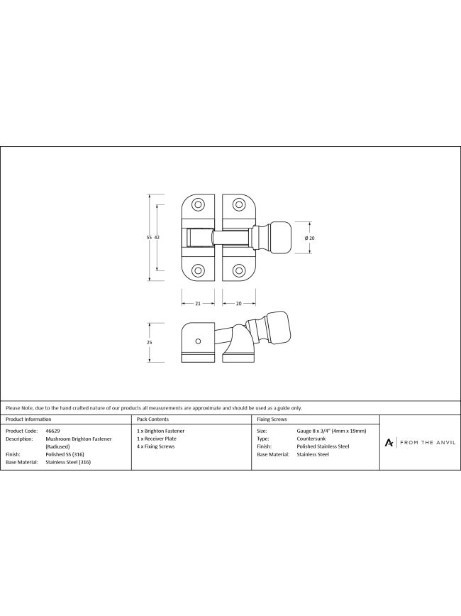 Polished Marine SS (316) Mushroom Brighton Fastener (Radiused)
