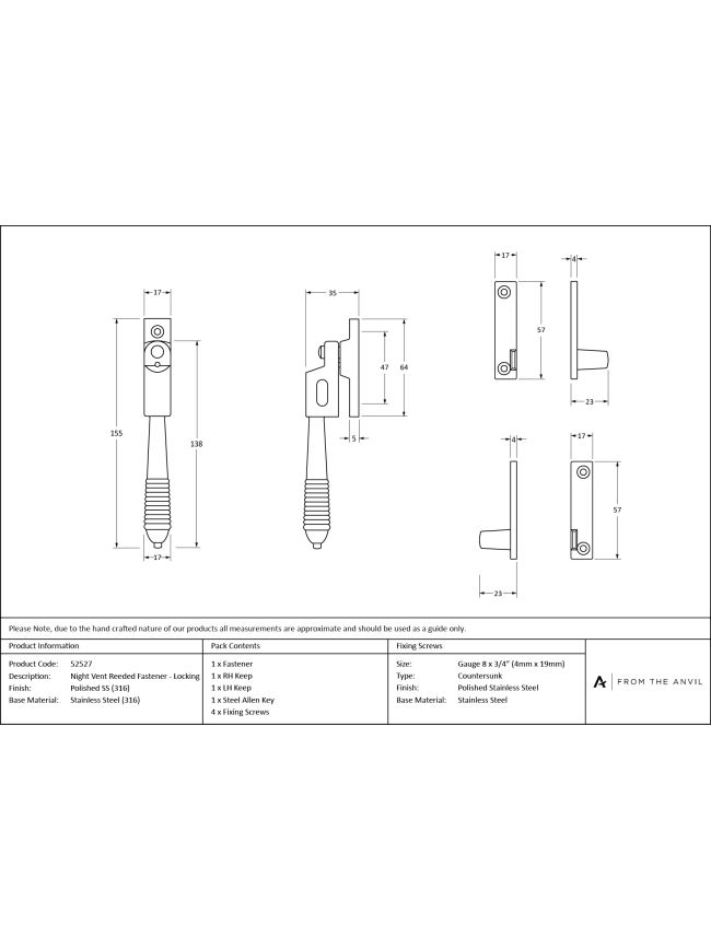 - Our weighty Reeded fastener is forged from grade 316 marine stainless steel. The reeded part of the handle accentuates the hand finishing carried out by our expert craftsmen. A perfect design choice for any home, with many matching products available.