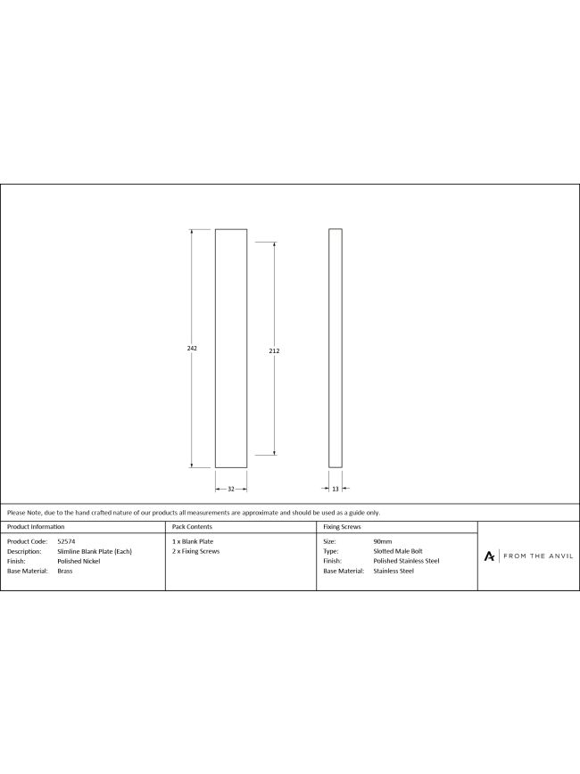 Polished Nickel Slimline External Blank Plate (Each)