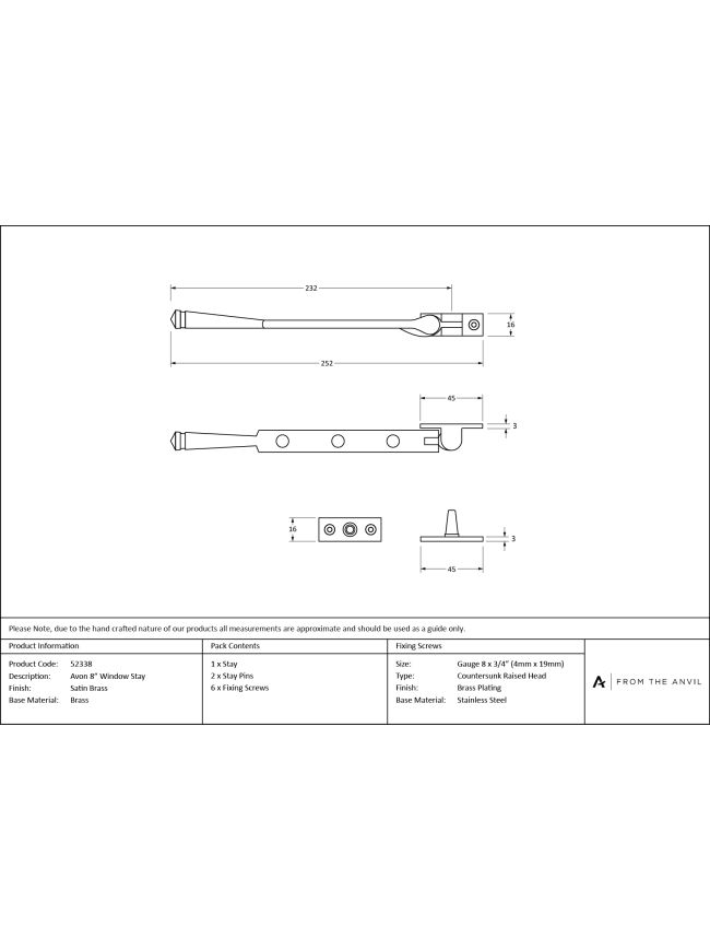 Stay Arm: 232mm