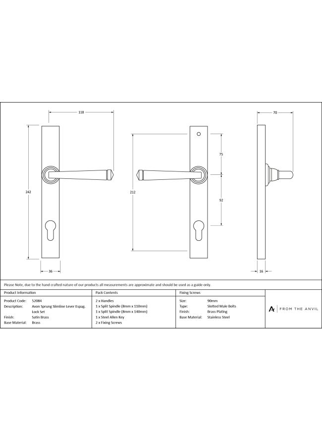 Satin Brass Avon Slimline Lever Espag. Lock Set
