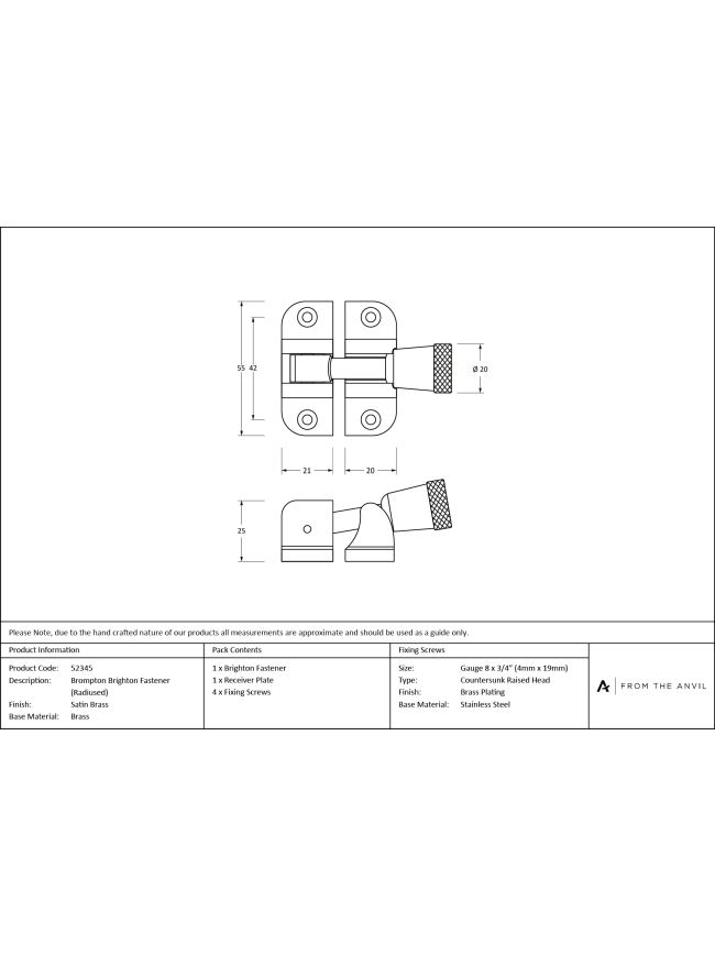 Satin Brass Brompton Brighton Fastener (Radiused)