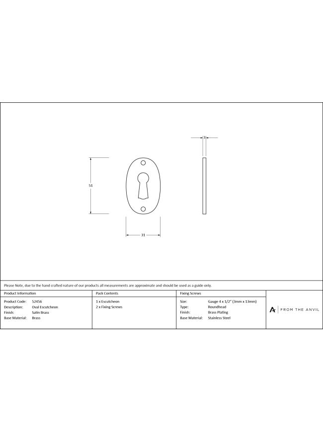 - This Oval escutcheon uses a standard key hole, permitting its use with a multitude of locks.
