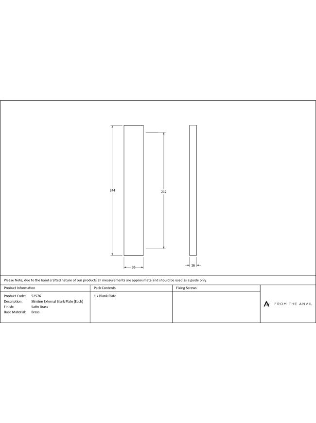Satin Brass Slimline External Blank Plate (Each)
