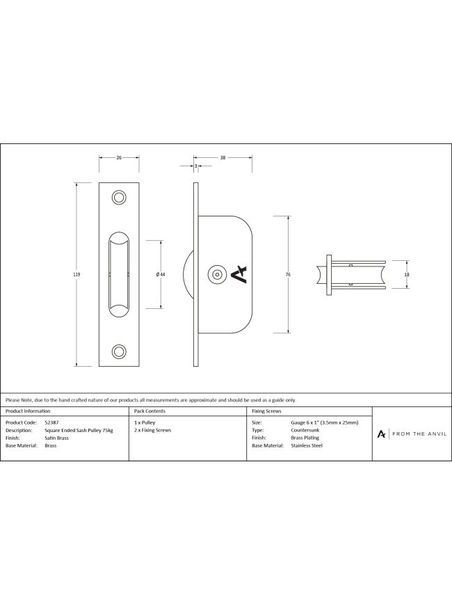 - 44mm (1¾”) curved wheel for use with cord up to Ø8mm.