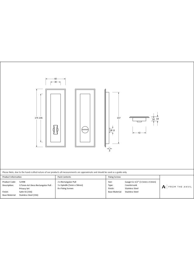 Satin Marine SS (316) 175mm Art Deco Rectangular Pull - Privacy Set