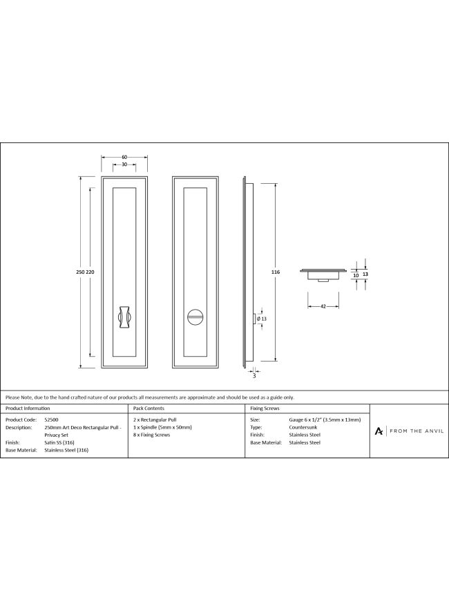 Satin Marine SS (316) 250mm Art Deco Rectangular Pull -Privacy Set