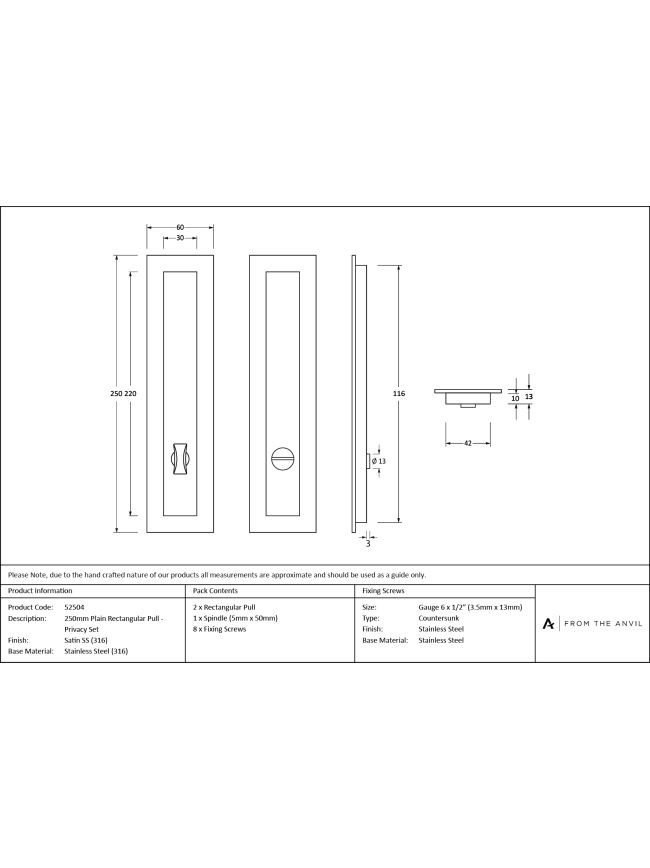 Satin Marine SS (316) 250mm Plain Rectangular Pull - Privacy Set