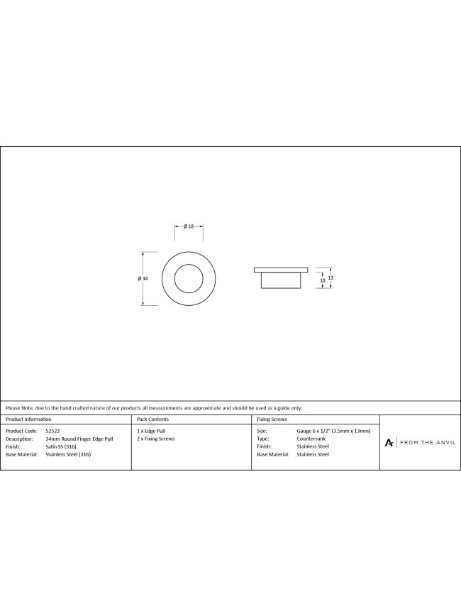 Satin Marine SS (316) 34mm Round Finger Edge Pull