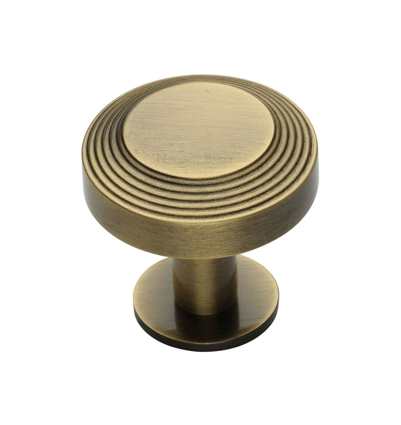 Heritage Brass Cabinet Knob Ridge Design with Rose 32mm Antique Brass finish UK Registered Design Number 6194410